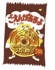 五円玉そっくりのチョコ菓子。「ご縁がありますように」という願いも込められ、縁起物としても人気でした。