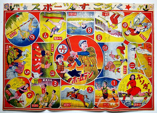 紙の上でコマを進める遊びで、お正月の定番でした。 家族みんなで楽しめるゲームとして人気でした。