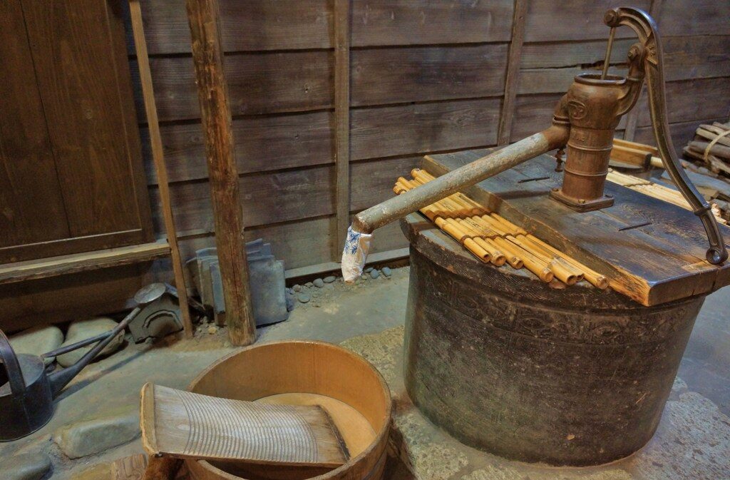 水道がない家では、井戸から水をくみ上げて使っていました。