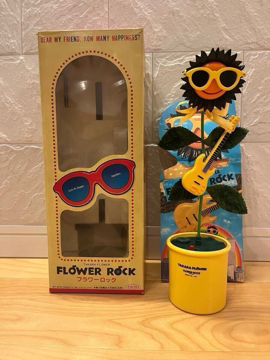 鉢植えに植えられた1輪のヒマワリまたはハイビスカスの花がサングラスをかけて楽器を持ったデザインとなっています。